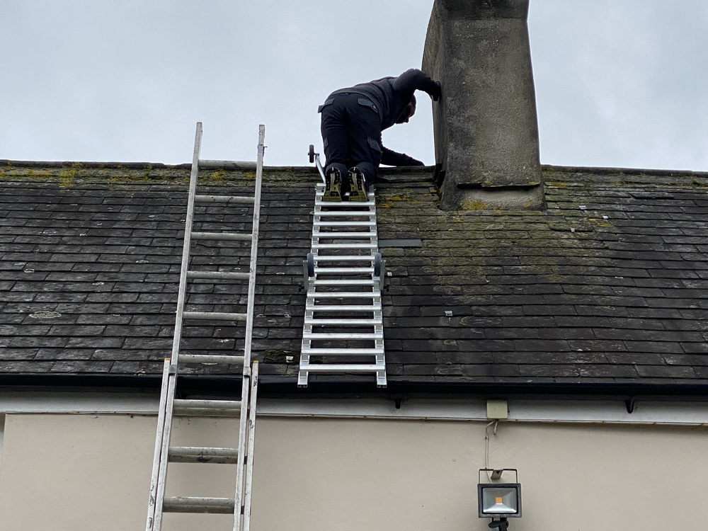 These ladders were bought specifically for jobs like this as they are very sturdy and spread the load of the operative, therefore, minimising possible damage to the roof especially slates.