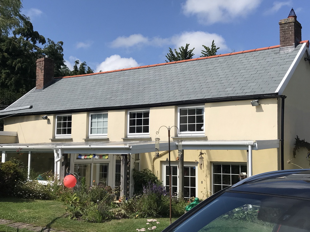 Griffin Roofing has completely stripped this roof in Bideford, North Devon and re-covered it with Brazilian slates using our favoured hook fix.