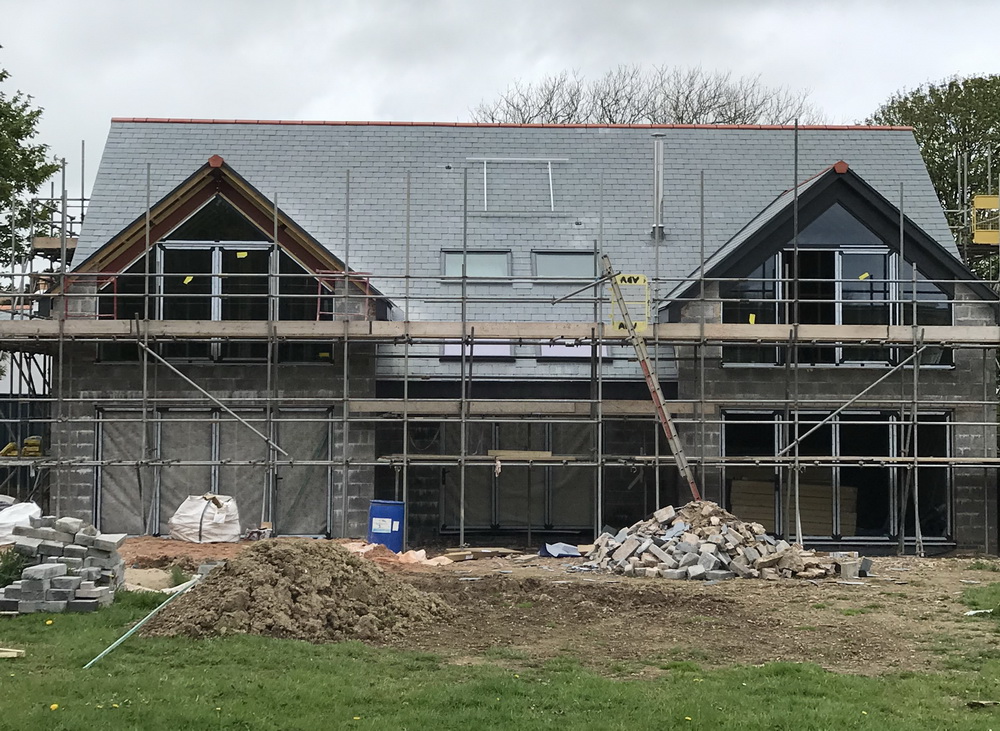 This roof has close on 7000 slates with 6 velux windows and solar panels which are being installed now we have finished. Some testing conditions were experienced on this one as it is in West Down so close to the coast.