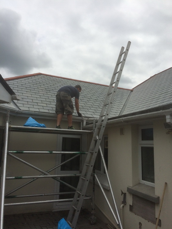 Using our new Macc Ladders for the first time on a slate repair for our client in Grencliff, Abbotsham.